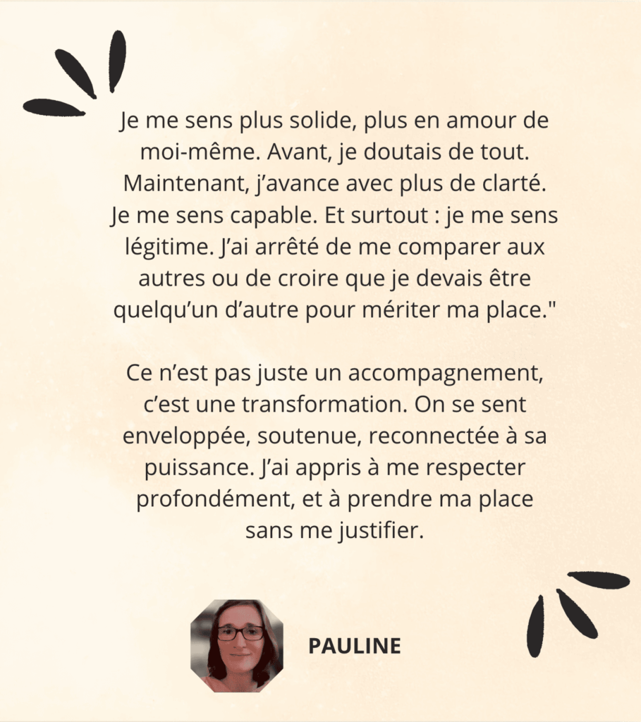 Mon combat, c’est que les femmes puissent se libérer des injonctions, des croyances et des blocages qui les empêchent d’être elles-mêmes. Qu’elles puissent être authentiques, puissantes, sensibles, et aimées pour cela.